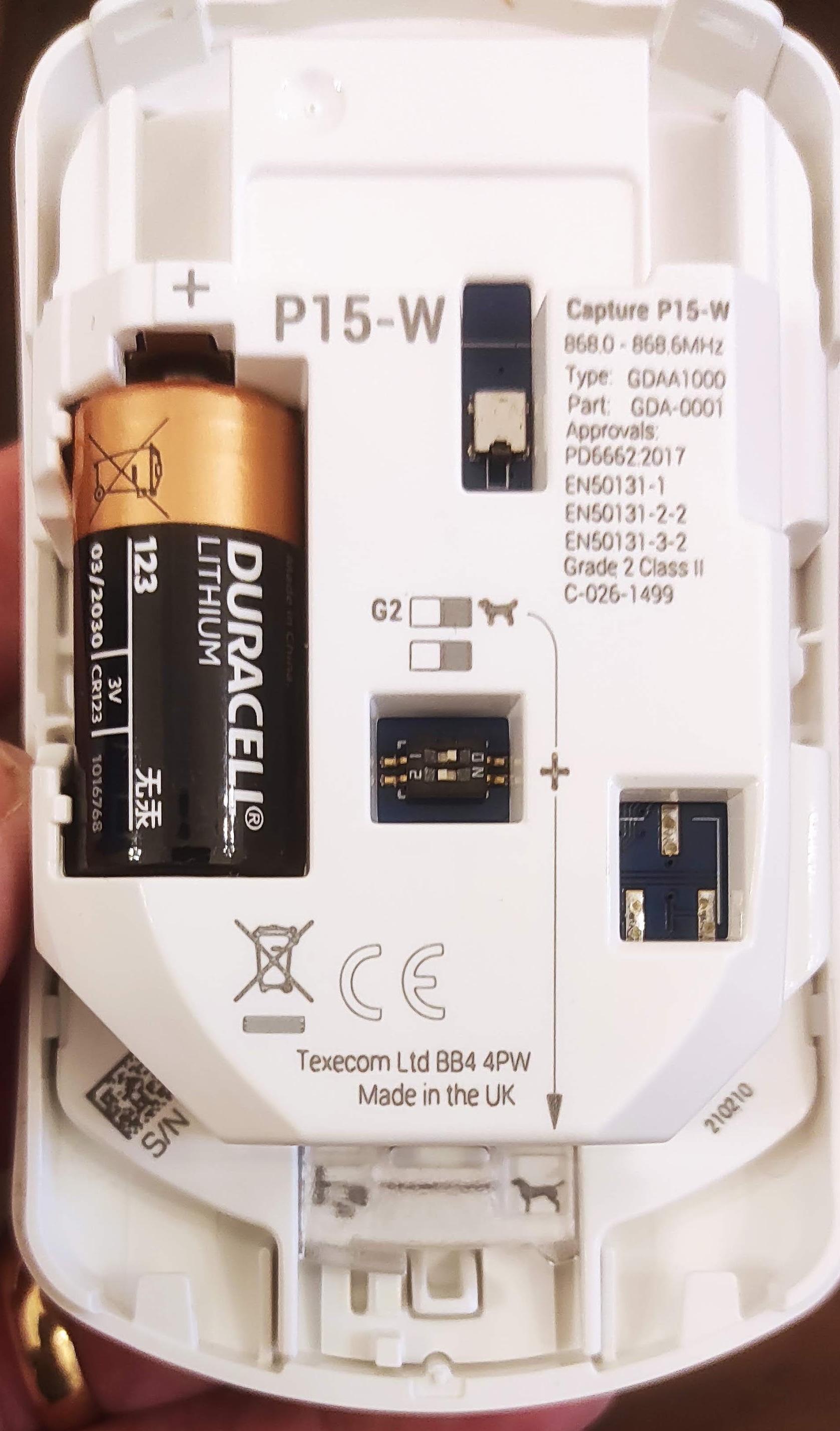 Then it’s simply a matter of learning it to the Ricochet system. There are a couple of ways of doing this and I’ve covered this before. This time, I used the ‘Learn Ricochet’ menu on the panel with the battery out, and then connecting the battery when prompted by the panel. It automatically sets up a zone with the appropriate profile (‘Guard’).